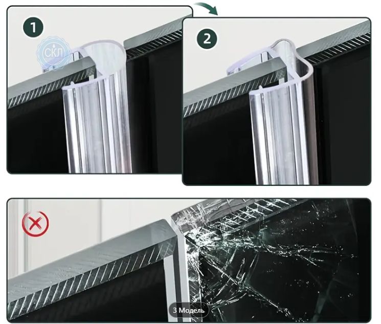 Завдяки точному приляганню і м'якій півсфері, ущільнювач забезпечує герметичне з'єднання між дверима або між дверима і нерухомим склом, запобігаючи потраплянню води за межі душової зони.